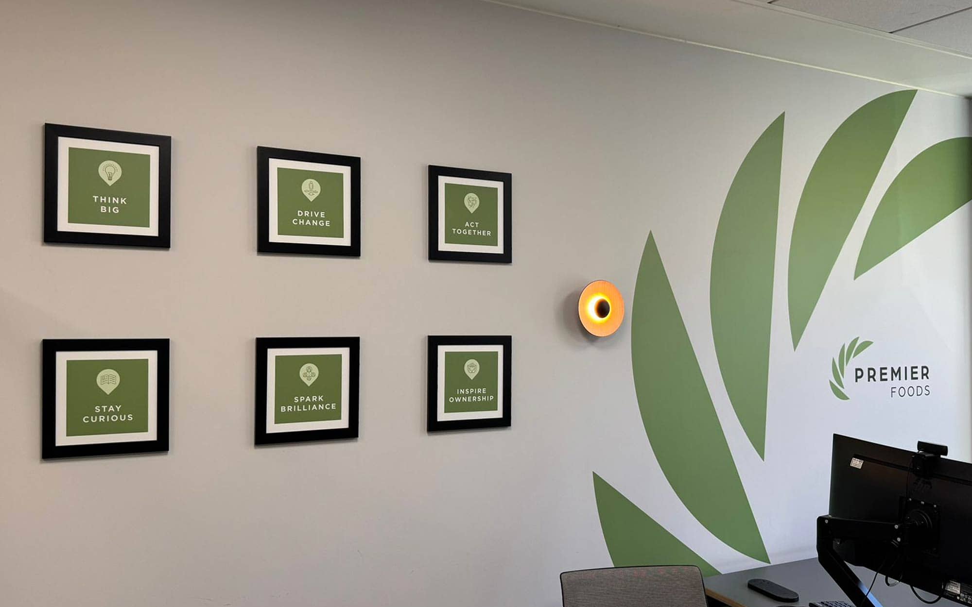 "What we achieved for Premier was to bring their brand values to the forefront of day-to-day life at their headquarters; celebrating their strengths, values and achievements with their staff and visitors".